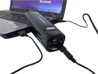 Charge the Music Power Bank via Computer USB Terminal.