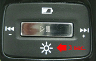 Press the Back / Volume - Button for the previous song, or keep pressing the said button for 3 seconds to decrease the volume. |