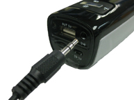 Connect one end of the 3.5mm mini-plug cable (optional accessory) to the Power Bank's audio line-in socket. |