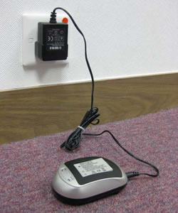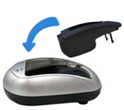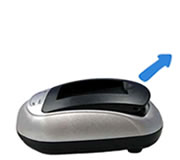 1.      Connect the supplied AC power adaptor to the DC in-jack of the battery pack charger base.